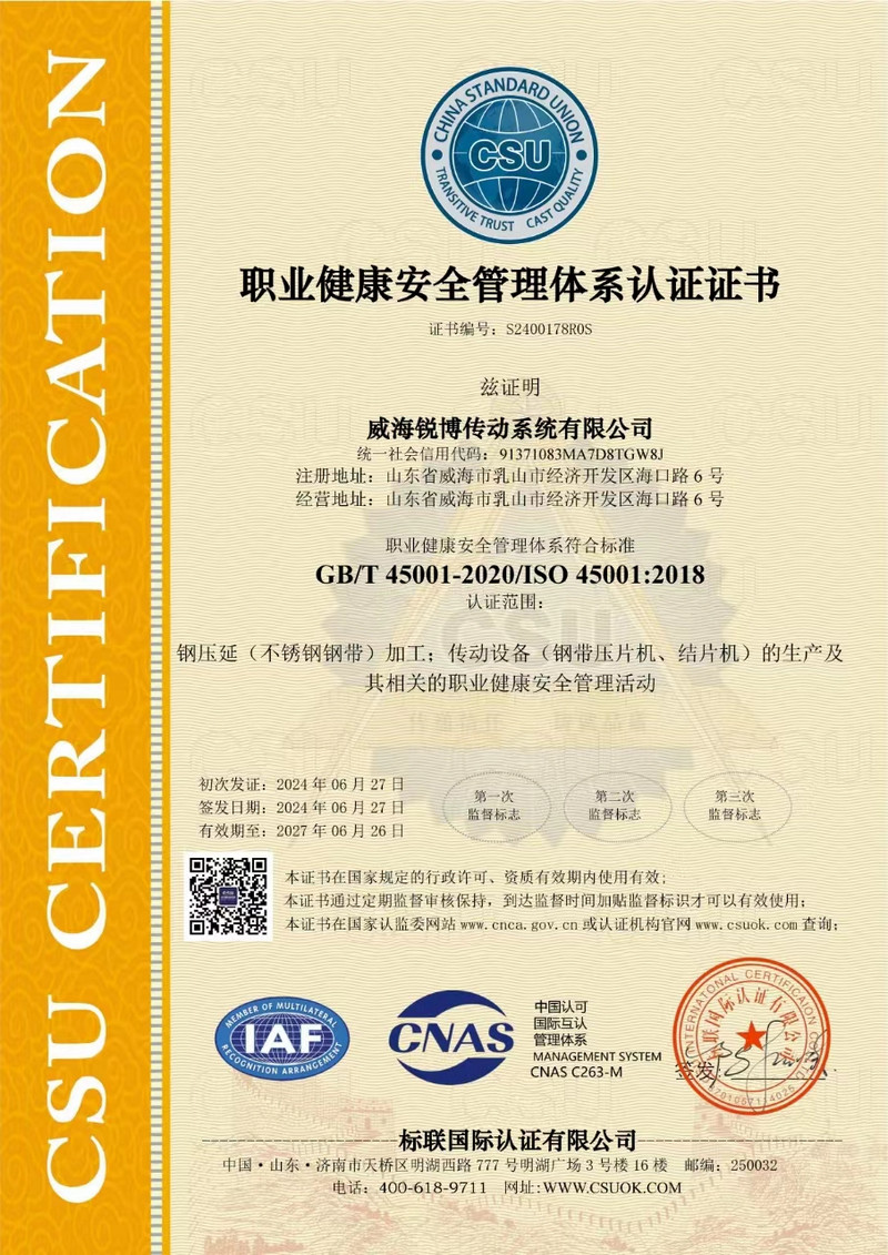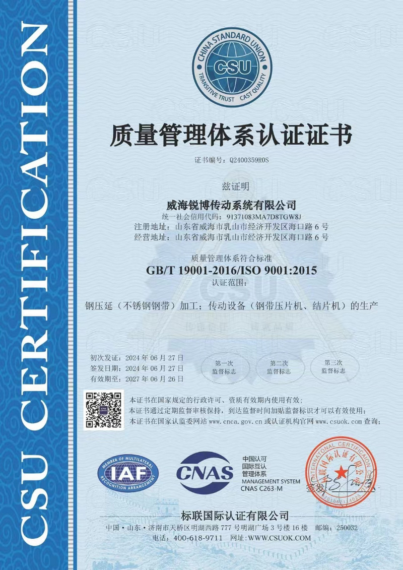 威海銳博傳動系統(tǒng)有限公司成立,并專注高強度鋼帶生產(chǎn)制造